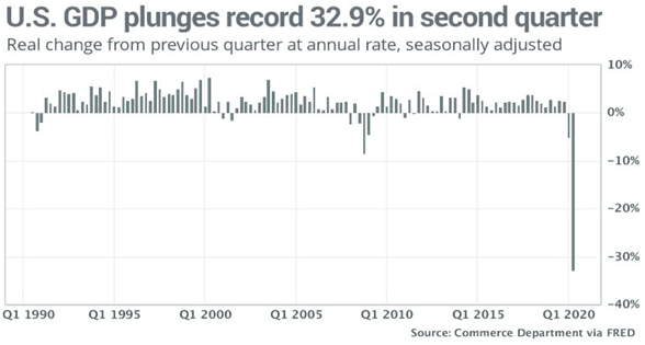 The US economy measured its worst ever annualised GDP contraction of 32.9% for the second quarter of 2020. That came despite the trillions of dollars spent in stimulus cheques, unemployment benefits and loans to businesses.