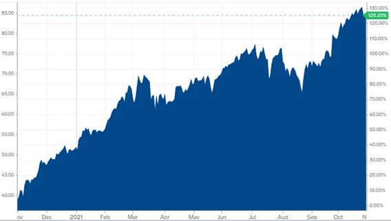 In September, the prospect of higher interest rates put the brakes on the year and a half rally across global stock markets. In October, the focus shifted to quarterly earnings in the US and it has been a strong earnings season with approximately 80% of companies beating profit expectations. Banks and technology companies have performed especially well, while companies in the ‘physical’ economy (manufacturers, retailers and restaurants) have struggled due to supply chain constraints. Businesses that straddle the physical and the digital economy, including Apple and Amazon, have also been impacted by supply chain problems.